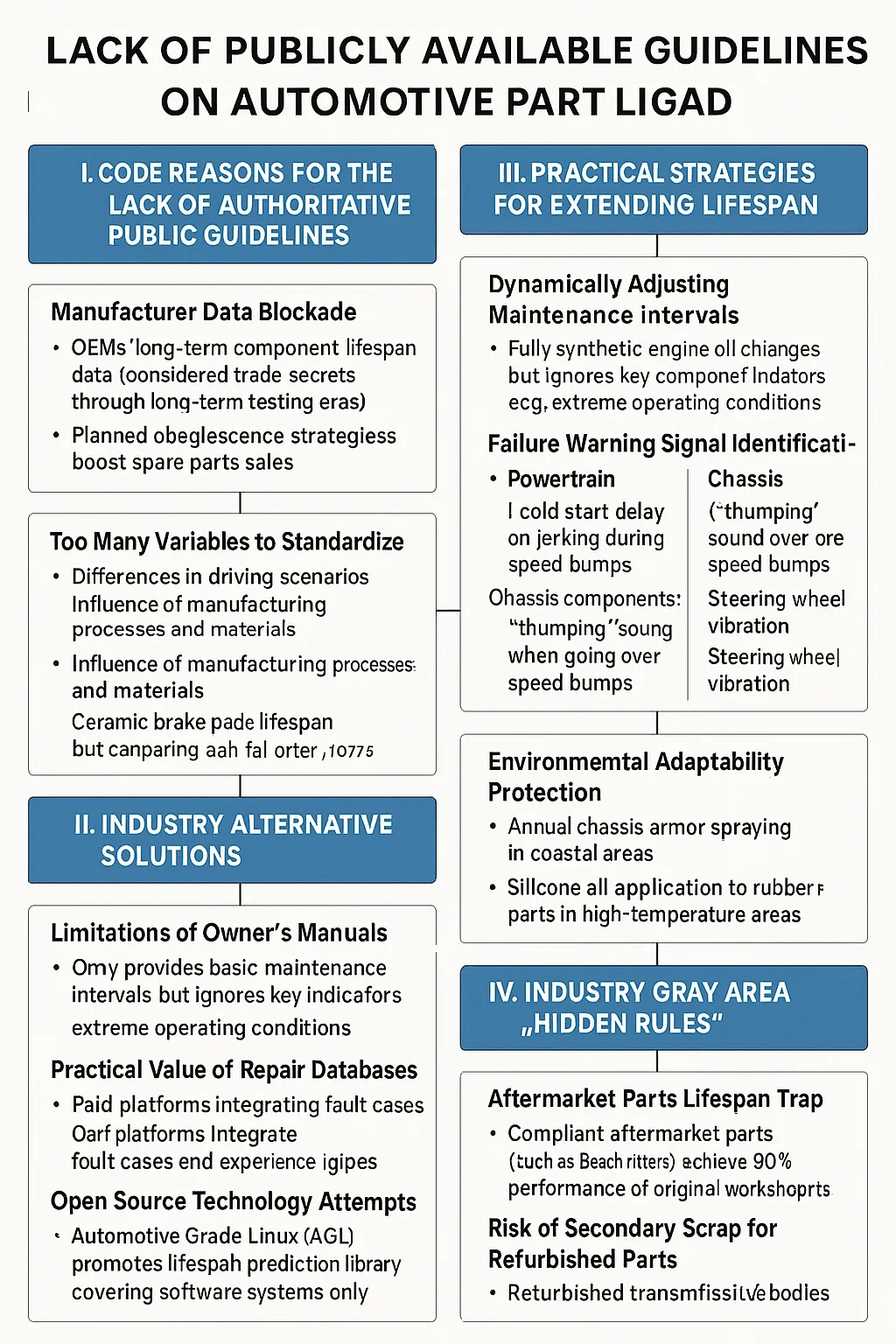 • ম্যানুফ্যাকচারার ডেটা ব্লকেড: দীর্ঘমেয়াদী পরীক্ষার মাধ্যমে OEM-এর জমা হওয়া উপাদানের আয়ুষ্কাল ডেটা (যেমন টাইমিং বেল্ট ভাঙার থ্রেশহোল্ড এবং বিয়ারিং পরিধান বক্ররেখা) ট্রেড সিক্রেট হিসাবে বিবেচিত হয় এবং প্রকাশ্যে প্রকাশ করা হয় না।